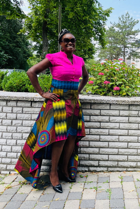 KAMSI AFRICAN FLARED HIGH-LOW PRINT SKIRT