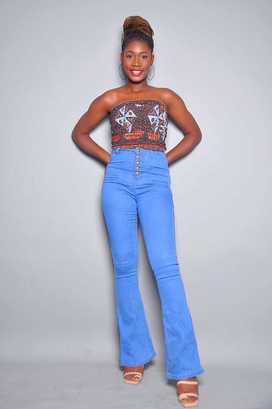 CHINENYE AFRICAN PRINT BLUE/ YELLOW TOP