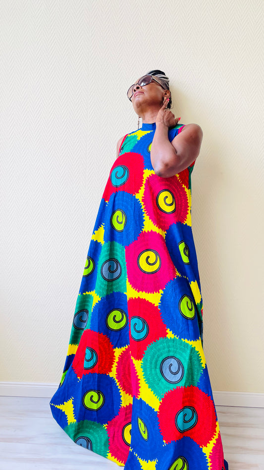 AMAKA AFRICAN PRINT HIGH-LOW MAXI DRESS
