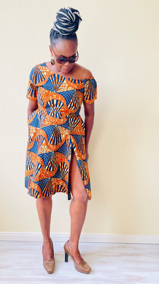 ASHAY OFF-SHOULDER AFRICAN PRINT SUMMER SHIFT DRESS