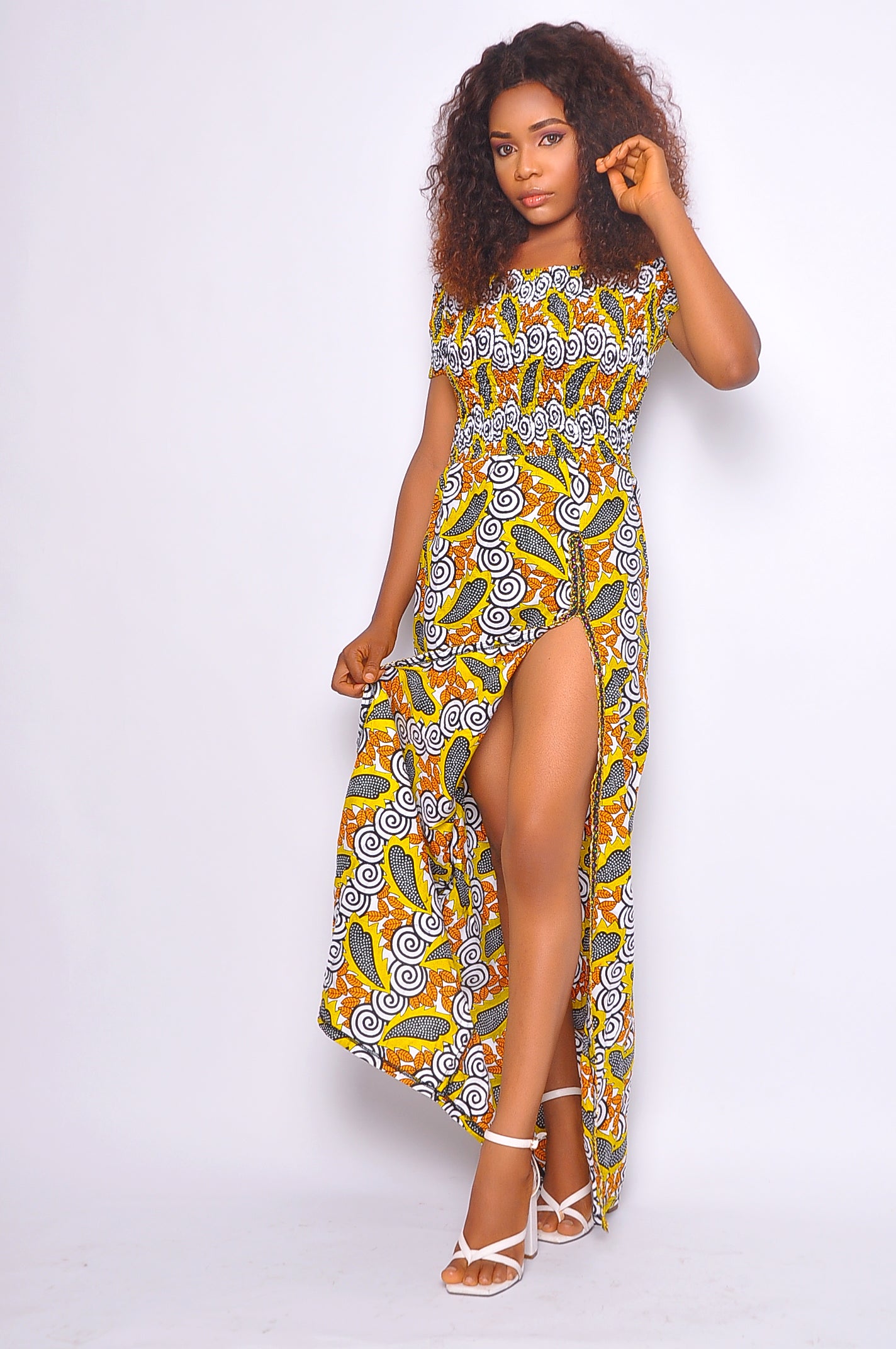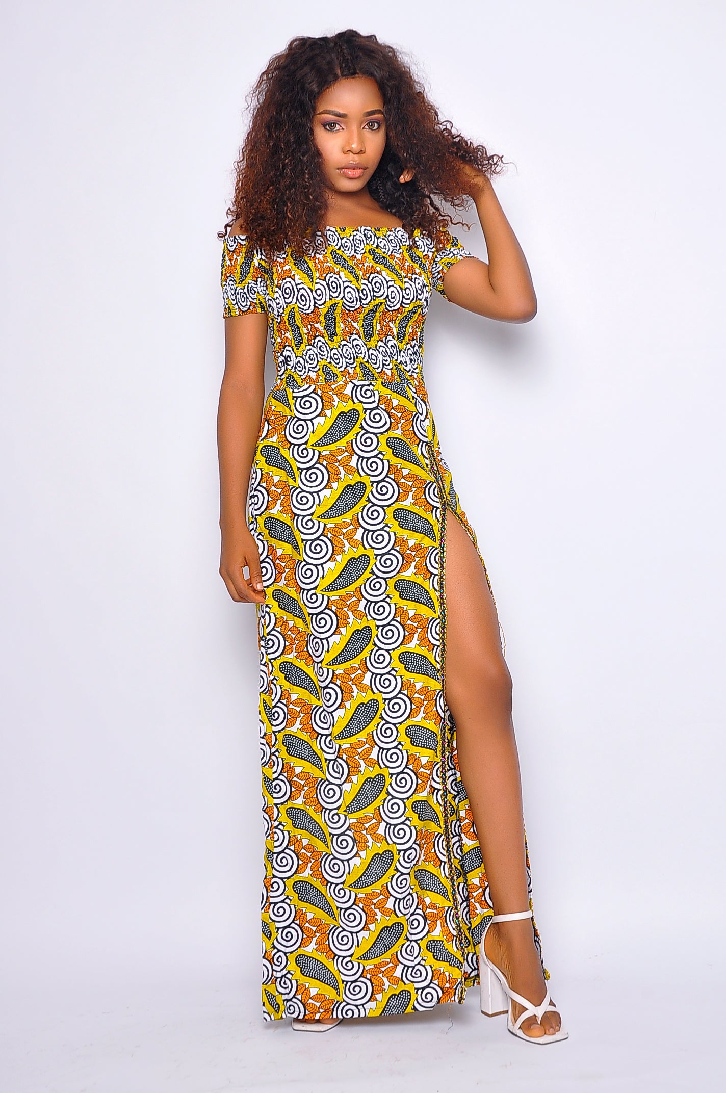 LAYO OFF SHOULDER AFRICAN PRINT DRESS